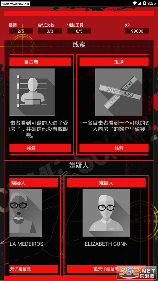 -不同的游戏神秘模式。需要侦破的凶杀案随机产生,你在其中可进行有限次数的尝试,赶在凶手设法逃跑之前破案,神秘案件中的凶杀案要限时侦破。