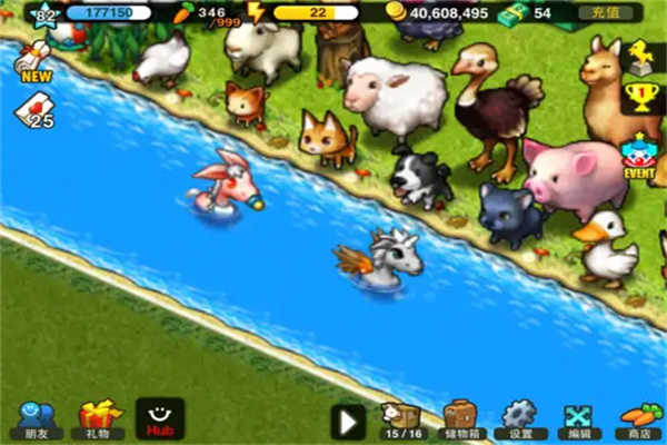 3、通过疏通河道激活生态互动,观察各类动物在牧场中自然嬉戏。