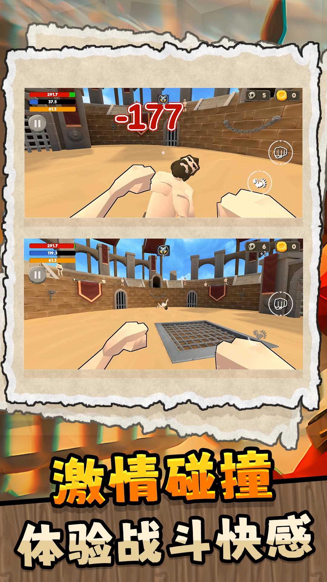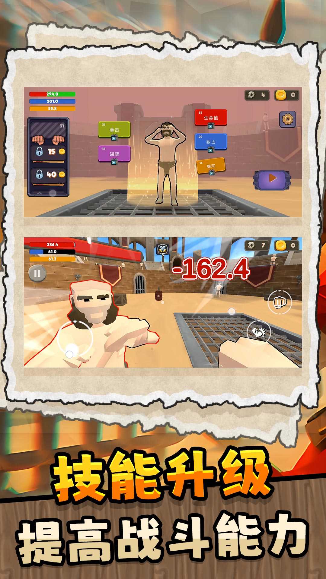 1、提供多样化角斗士角色选择,每个角色具备专属技能树与战斗风格,通过实战积累经验值逐步解锁传奇能力。
