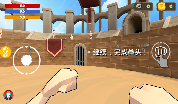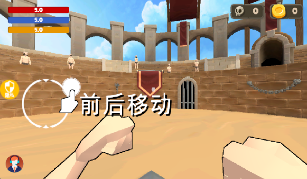 3、强调战术走位与环境利用,玩家需预判敌方攻击轨迹,通过环形迂回消耗对手体力,善用竞技场石柱等障碍物制造战术优势。