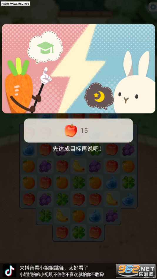 画风比较可爱,兔子和一些蔬菜小动物都特别可爱呢,玩法上是消消乐玩法,不过整体来说如果是有目标性的消除而言难度确实有所提升。