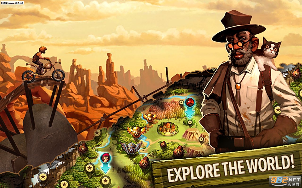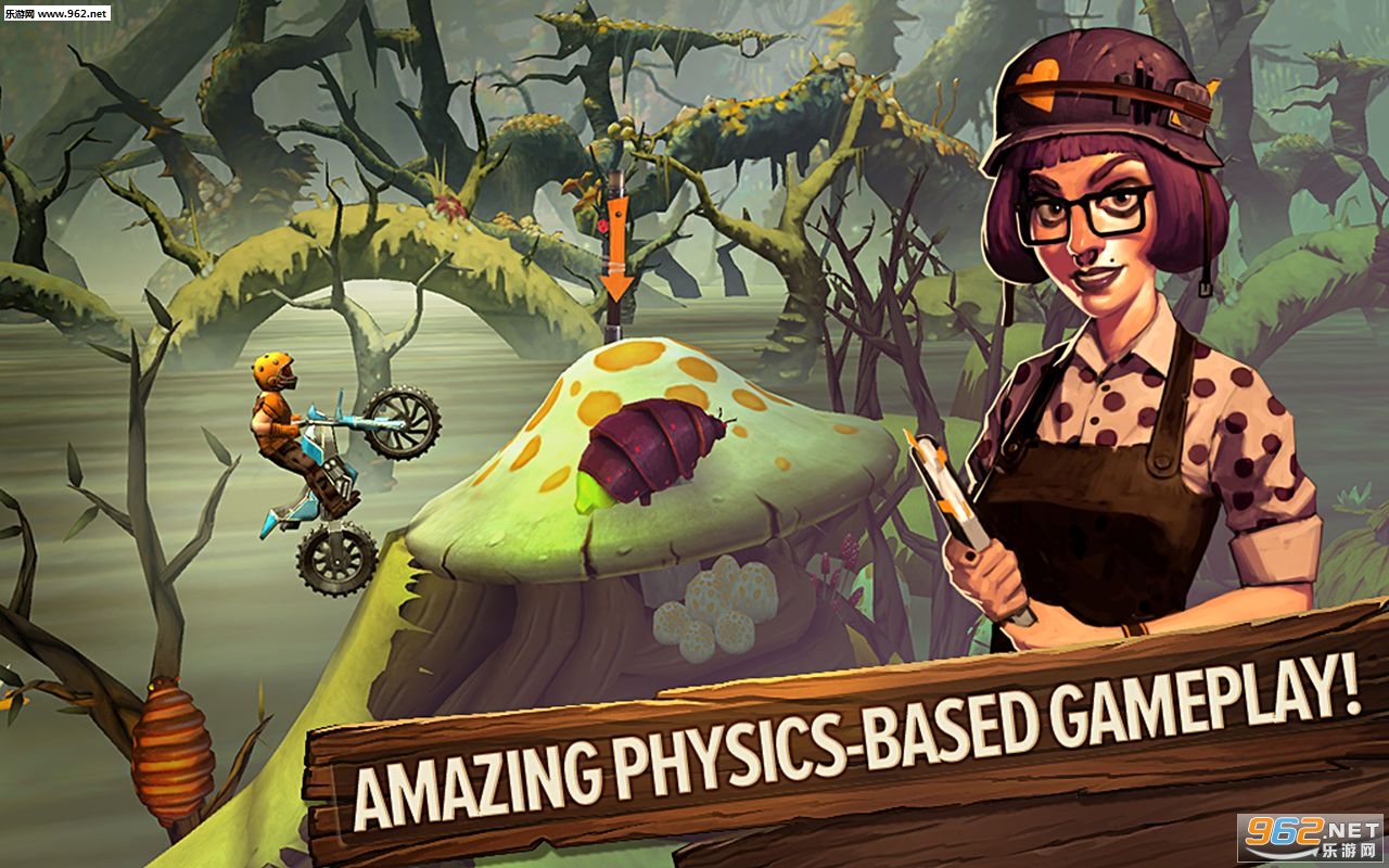 骑着你的摩托去探索一个广阔的世界。与你的朋友们在全球排行榜上竞争。掌握那些基于物理特性的游戏赛道,挑战世界上最好的骑手所创造的时间记录。骑着你的摩托在这个充满了各种冒险、疯狂人物和让人上瘾的赛道的《特技摩托:前线》世界中竞速!