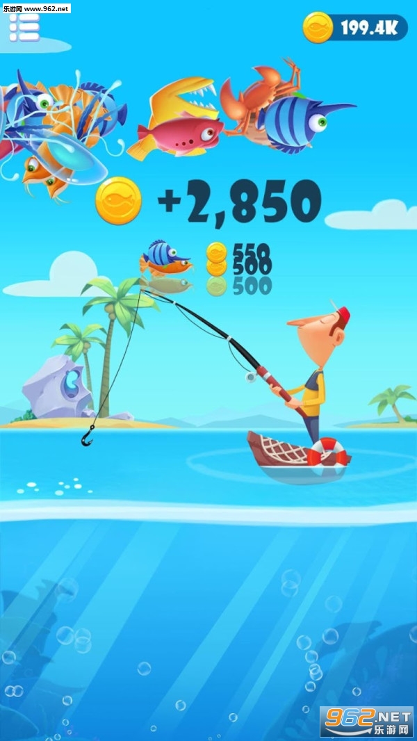 可爱的卡通风格设计,休闲简洁化的乐趣挑战,操作你的鱼竿收获更多的海产鱼类,惊喜多多好玩不停;