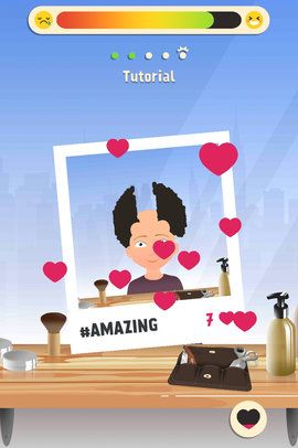 游戏的操作简单,玩法挺沙雕的,在这里你可以自由的发挥你的创作能力,设计不同的发型,完成各种有挑战性的任务 ,感受经营理发店的乐趣!