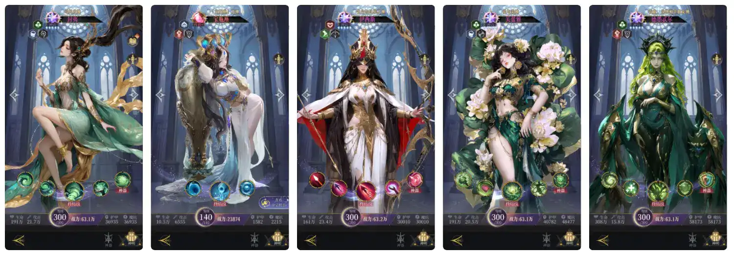 狄安娜、潘、阿尔忒弥斯、德墨忒尔、阿瑞斯、波塞冬、美杜莎、赫卡忒、峥嵘树妖、纯水之灵