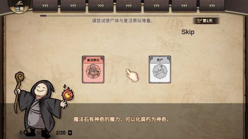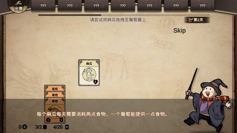 生存从食物开始。每位麻瓜每日消耗2点食物,而一颗葡萄仅提供1点,因此必须精打细算。玩家需在资源类卡牌上采集基础材料,用于建造、生产或加工。经过加工的物品价值显著提升,出售可获得更高收益,从而支持卡包购买与技术解锁。但切记:资源有限,决策需谨慎——过度探索可能暴露于危险,过度囤积则可能错失升级良机。
