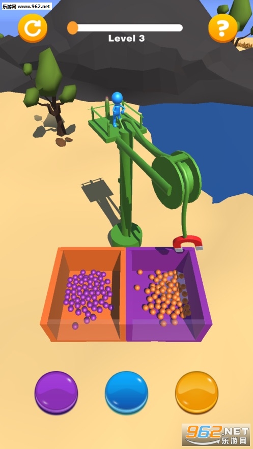 控制起重机将所有珠子收集到匹配的彩色盒子中。