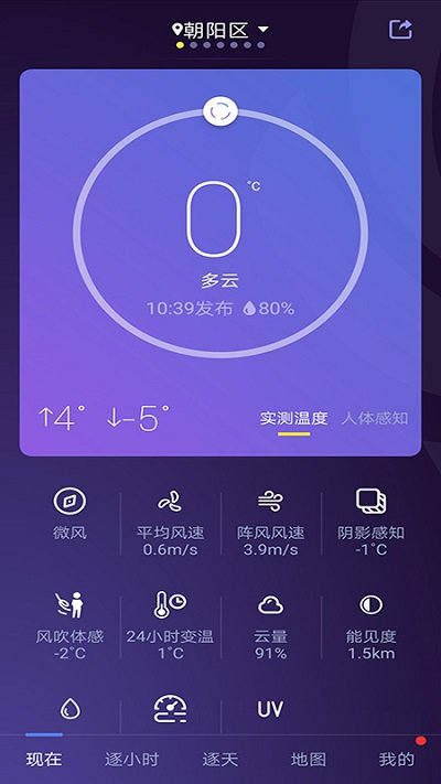 4.人体感知:综合多种气象要素,告诉你接近人体感知的温度。