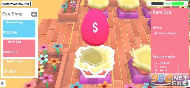 2、将老母鸡产出的鸡蛋售卖出去,就能赚取到丰厚的财富,扩大升级农场的规模。