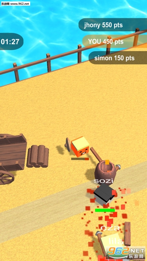 《Warrior.io官方版》变身勇士在战场上战斗吧,面对其他勇士的攻击,你要做的就是拿起武器快速干掉对手哦,在战场上收集武器来提升自己的攻击力,强大的火力帮你轻松击杀敌人,玩家还可以摧毁战场上的木桶来获取能量,帮助自己释放必杀技哦!