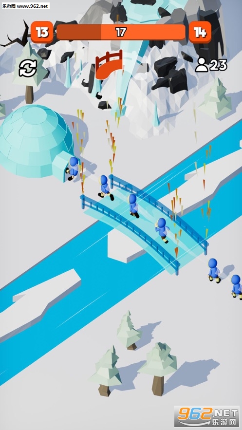 3.连续完美的跳跃过河还能解锁特殊道具,小桥道具能够帮你更加安全快速的帮助更多的小人到达河对面。