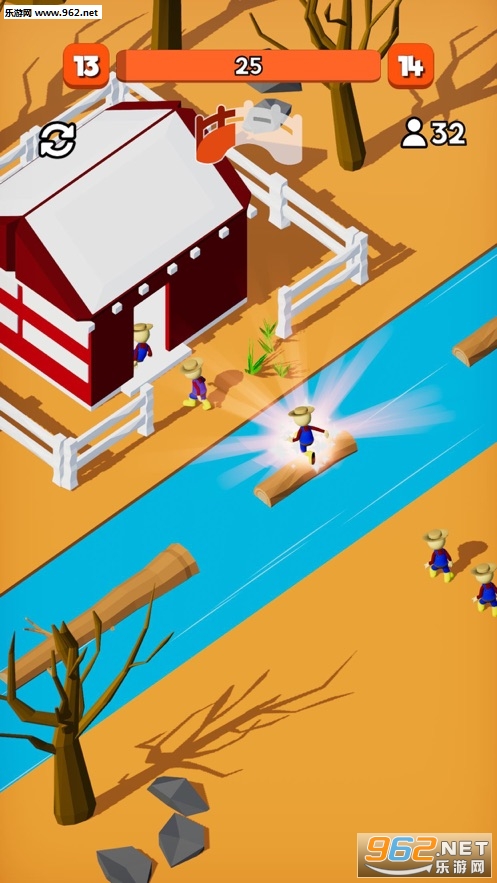 轻松娱乐的过马路风格的挑战游戏,相对于找规律躲避的玩法规则,这款游戏需要玩家去找寻如何穿过河流到达对岸的方法;