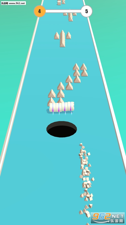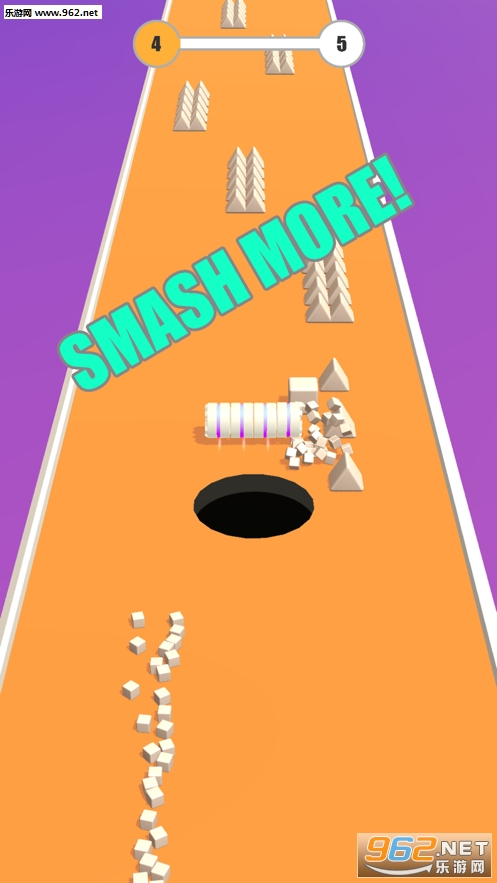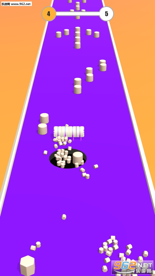 1、通过滑动屏幕即可控制你的滚筒左右移动,看准前方的小块;