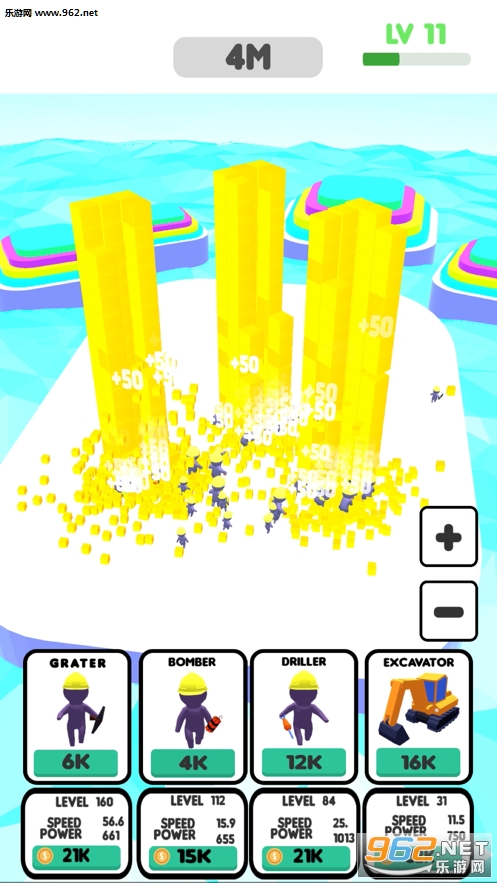 3、还能使用金币去帮助他们购买更高的工具,让他们可以更加方便的摧毁;