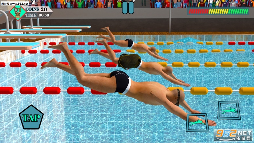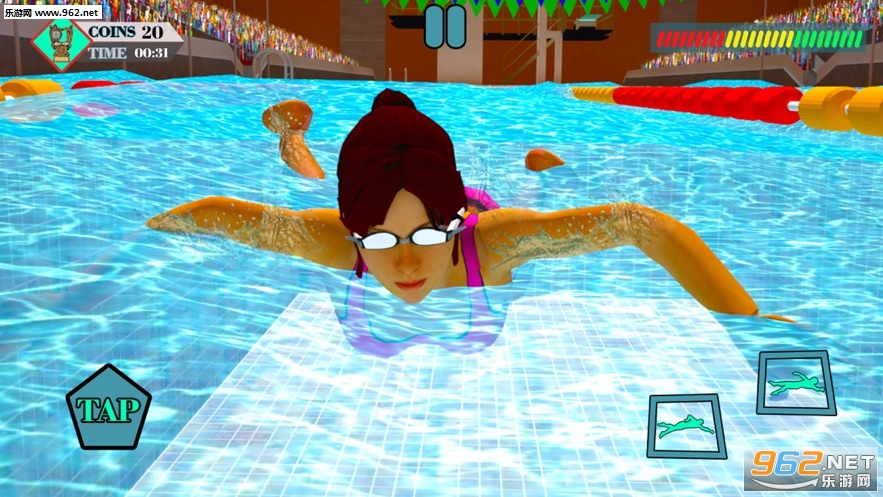 《夏季运动游泳比赛》是一款3d风格的游泳比赛模拟游戏,游戏中玩家将化身为游泳运动员参加一系列的比赛,游戏中玩家可以控制角色的游泳状态,通过点击不断的进行加速,最终获得胜利。游戏的玩法简单有趣,场景真实,赶快下载体验吧!