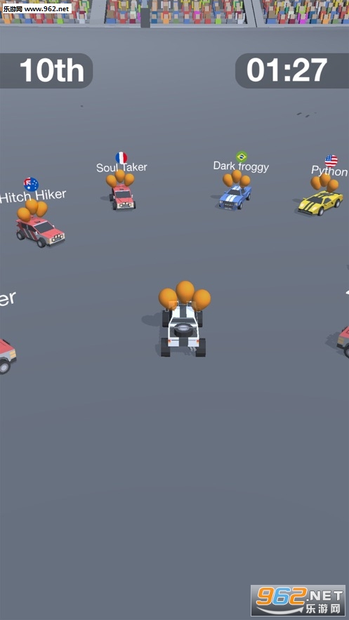 非常刺激和酷炫的一款赛车碰撞类游戏,你必须驾驶自己的赛车将场上所有的汽车全部摧毁活到最后才行,游戏每局有10人,感兴趣的玩家可以下载挑战!