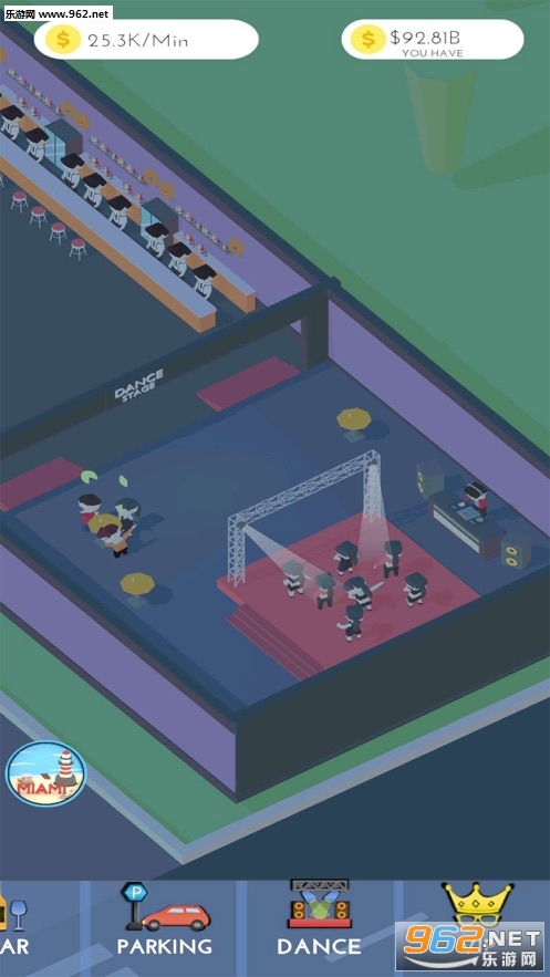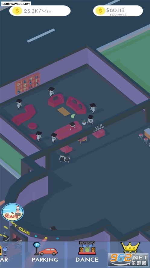 从一个美丽城市的小俱乐部开始,把它变成世界上最大的夜总会。建立一个夜总会、舞蹈俱乐部、泳池边派对俱乐部、VIP俱乐部、大厅等,通过扩大空间和提供优惠来吸引更多的顾客(牡鹿、情侣甚至是最大的名人)。通过入会费和酒吧/俱乐部物品支出使俱乐部收入翻倍。建筑和人物的不断升级,使其更加生动。