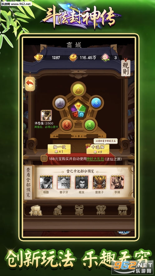 以古典的神话故事为背景,结合了现代卡牌游戏风格,塑造了一个策略性的养成性封神战场;