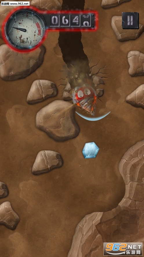 《Dig Three游戏》是一款3d风格的敏捷躲避游戏,游戏中玩家要控制一个电钻不断的向下挖掘,你可以去收集地下的钻石等等宝藏,但是也会出现各种陷阱,你要小心,不要碰到它们哟,不然你的钻头是会被损坏的。