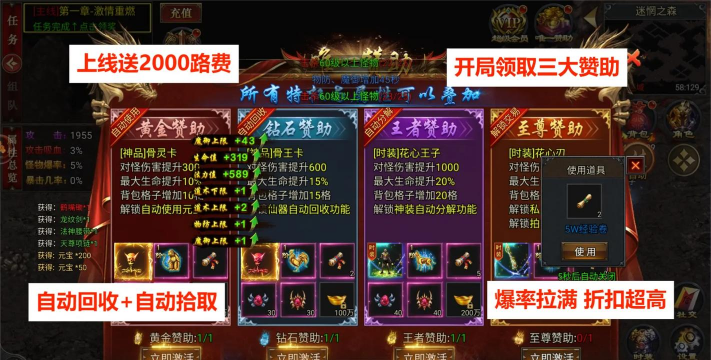 3、高爆率,高回报,装备秒上架,装备秒回收