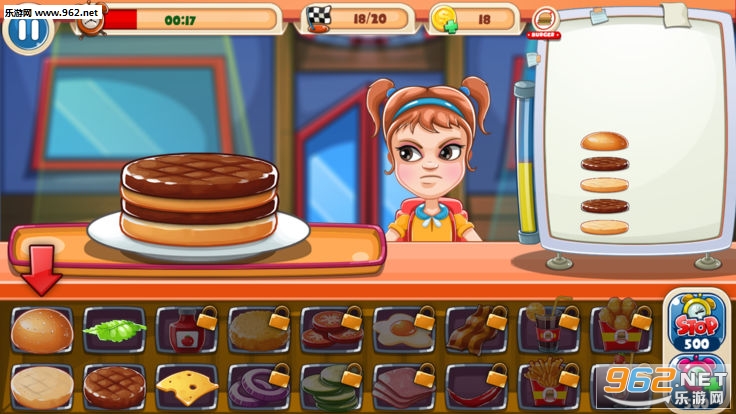 简单的拖拽点击,即可烹饪美味的汉堡,而且速度越快,顾客给予的小费越多哦!
