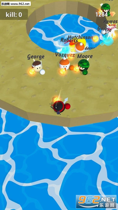 《拳击大混战游戏》是一款多人io竞技玩法,在玩法上并没有什么新鲜的地方,游戏中你要控制你的小人将其他的对手推到水里,没击败一个对手你的小人就可以获得一定程度的成长,最后谁还能站在擂台上谁就获胜。