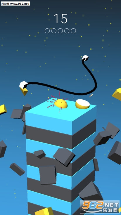 4、更加快速的点击,多次的碰撞能更快的击碎方块塔。