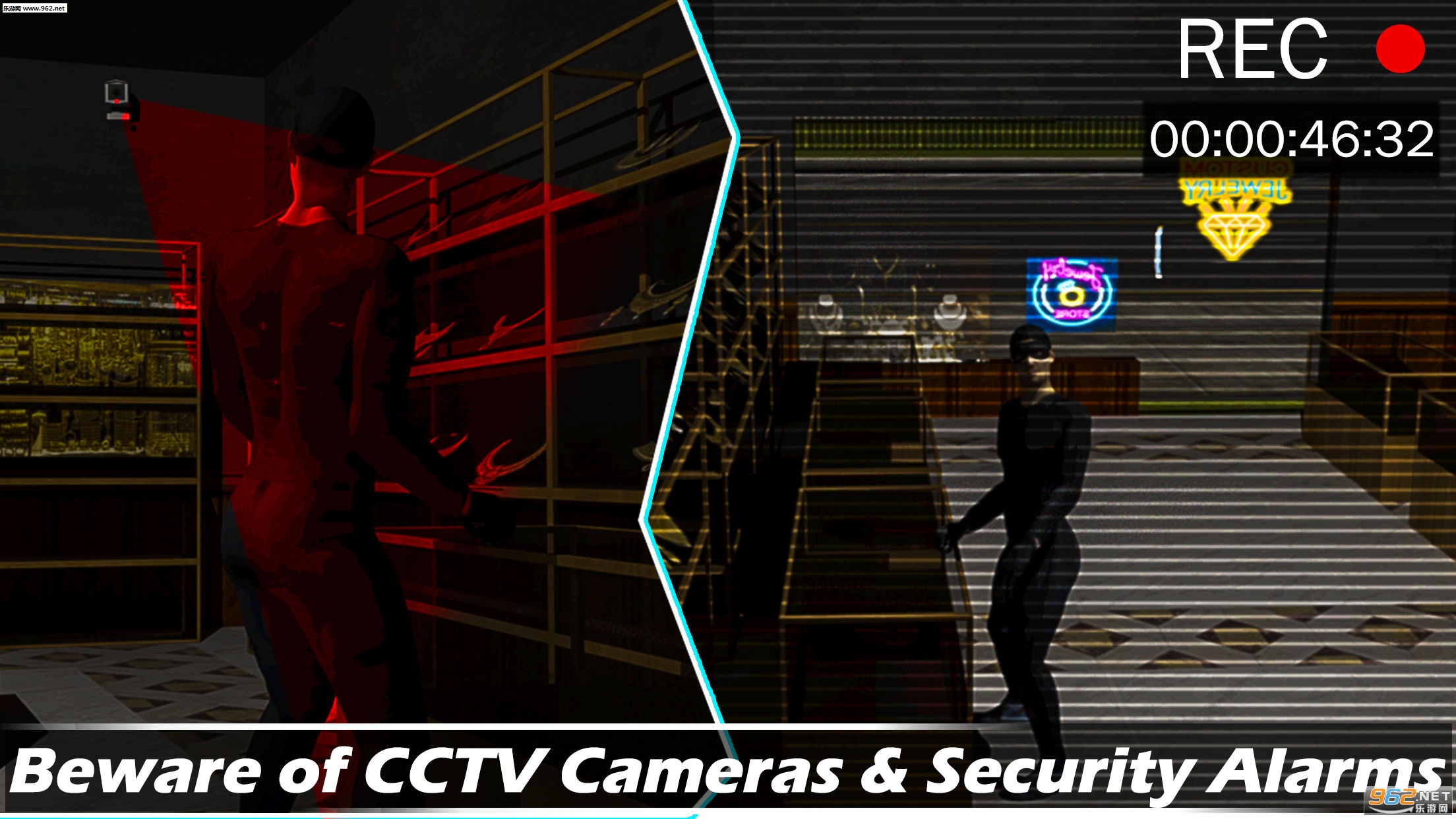 去鬼屋里面盗窃,这会是一种怎样的体验呢?一定会非常的刺激,在这款游戏中,玩家们就可以扮演这样一个小偷,将要进入到一个闹鬼的屋子里面,盗取珠宝钻石,这个鬼屋里面装了很多摄像头,躲避他们,不要遇到了鬼,然后将珠宝带出来,完成任务。