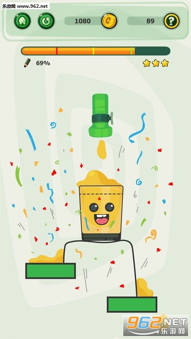 3、趣味性非常的强,自由的发挥,利用各种道具,成功的让杯子装满果汁。