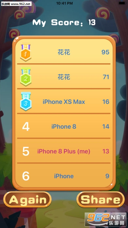 3、支持一键分享成绩,到朋友圈秀最高得分。