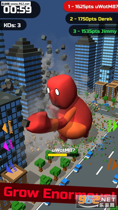 玩家需要控制角色,在城市里大肆破坏,让自己成为巨无霸,注意对手的偷袭哦!