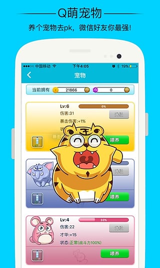 Q萌宠物:养个宠物找熟人好友PK,赢了能把好友抓来暖床跳舞刷马桶,让你和熟人好友互动更有趣。快来领养超Q的萌宠来为你战斗吧。