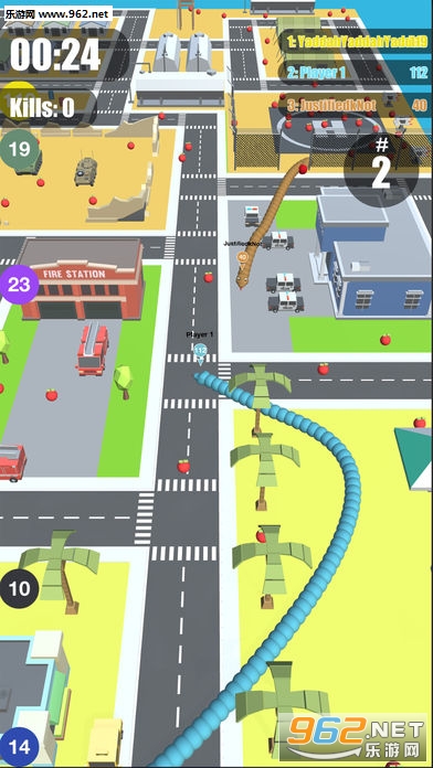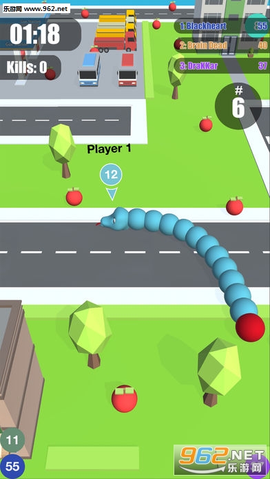 1、控制一条贪吃蛇,在城市展开急速奔走冒险,吞噬更多的苹果,壮大自身条件;