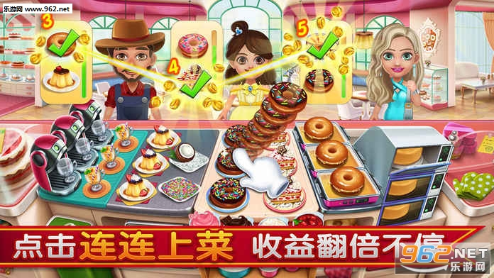 只需点击和拖放,即可烹饪各式美食,尽可能快速完成顾客订单,完成所有的挑战任务!