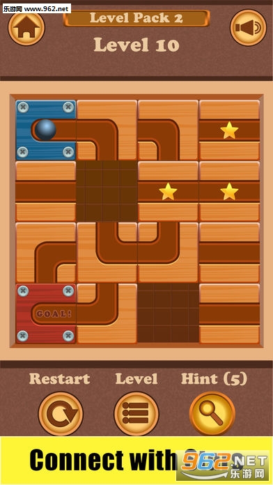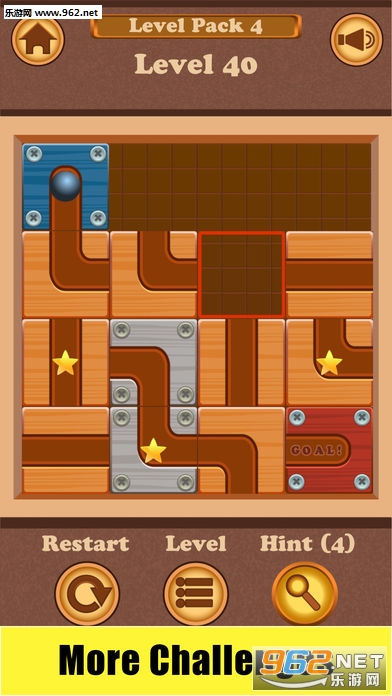 通过拼图将管道拼成,让铁球滚进最后的目标洞里,并且需要把管道里的星星吃掉可以完美通关!