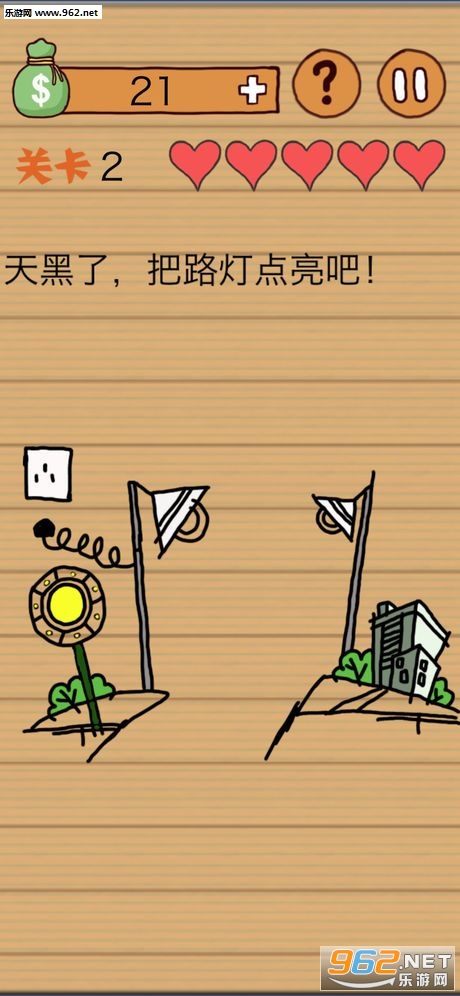 把左上图标记的黄灯拖到路灯处即可过关。