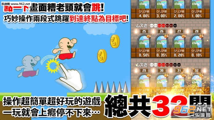 触碰画面跳跃,再触碰一次就能两段跳跃,规则只有这个!自在操控老头,完成目标!