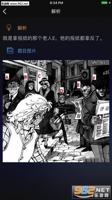 题目分图片和文字类型,每一题都有详细的解析,如果你能够不看解析就能侦破案件的话,那你很棒棒哦!