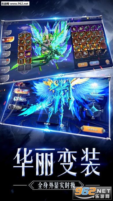 最华丽最丰富外观显示随意换。角色全身五部位动态换装,翅膀、坐骑、魂器、精灵打造尽情彰显自我。