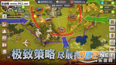 考虑地形、道路和补给等多种战争元素,远交近攻,合纵连横。另有30种策略可供使用。