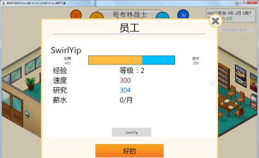 在这款模拟经营游戏中,你需要管理自己的游戏公司,并尝试设计出独特的百万畅销的游戏。需要统筹规划好公司的发展,招聘各种专业人才,厘定员工的工资,让你的公司健康运行,最终获取游戏开发大奖赛。