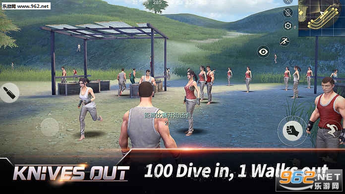 《Knives Out荒野行动》,真正做到了容纳100人开局对战。超大地图超远视距,手机端精心设计多种操作模式,带给玩家畅快舒适的竞技体验! 6400*6400超大世界,真正容纳100人开局!跋涉山峦旷野,探索城镇村郊!组队开黑,战术配合花样迭出;道具种类丰富,自由搭配,更有多种配件强力升级;针对手机端精心设计多种操作模式,提供极致竞技体验!