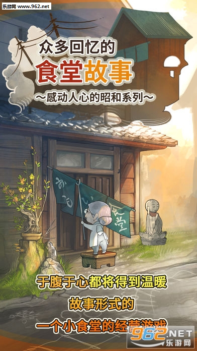 回忆中的食堂故事背景设立在昭和年代,老奶奶经营着一家老旧的日式居酒屋,从开门的时间起便要忙于准备食材、制作料理,待到万事皆备后就一个人坐在小板凳上喝茶,不慌不忙地等待第一个客人登门,给人以“岁月静好现世安稳”的感觉。