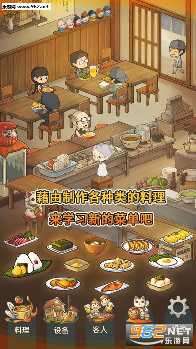 在食堂中我们扮演的这位老奶奶将为形形色色的食客制作料理,获得金币。然后通过金币进而购买食材、店内设备。单一商品重复制作能够提升料理等级从而解锁新的料理。