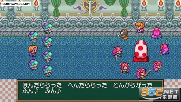 游戏战斗是 RPG 模式,过程类似《梦幻模拟战》那种 Q 版小人对撞,玩家还可以在战斗过程中调出菜单使用“必杀技(きりふだ)”或者该系列标志性的“蛋”系统(类似于随机的召唤兽)增强战力,“蛋”系统非常搞笑,召唤的时候主角英雄领着手下士兵,围着一颗蛋跳舞,实在是滑稽。