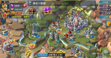 联盟大会战 加入联盟,与盟友一起指点江山、商讨策略、互补协助,还可以集结军队和盟友一起向您们的敌人发动史诗级的百团大战。