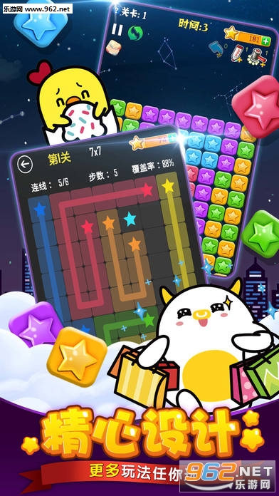 【萌星解谜】激萌的关卡设计,完美消除关卡中的所有星星才可过关。虽然关卡软萌,要想完美消除还是需要开动脑筋的,挑战你的极限!