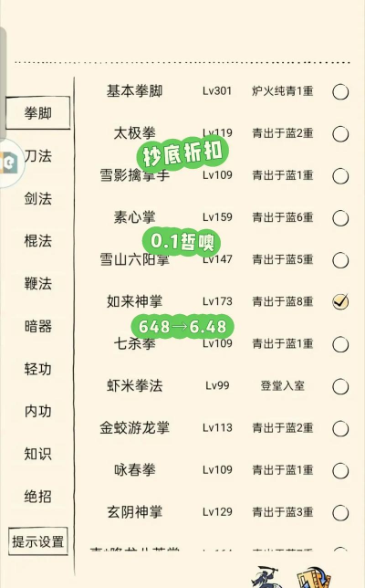 3、修炼上百种武功,成为一代大侠!