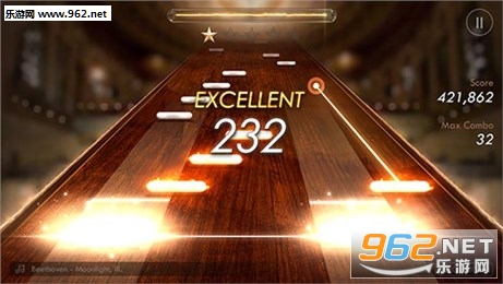 游戏的玩法采用的是传统的下落型模式,只需在指定的判定区域内看准时机按下音符,即可跟着音乐进行演奏,可谓是十分传统。当然本作的亮点之处自然是诸多“古典音乐”的加入。