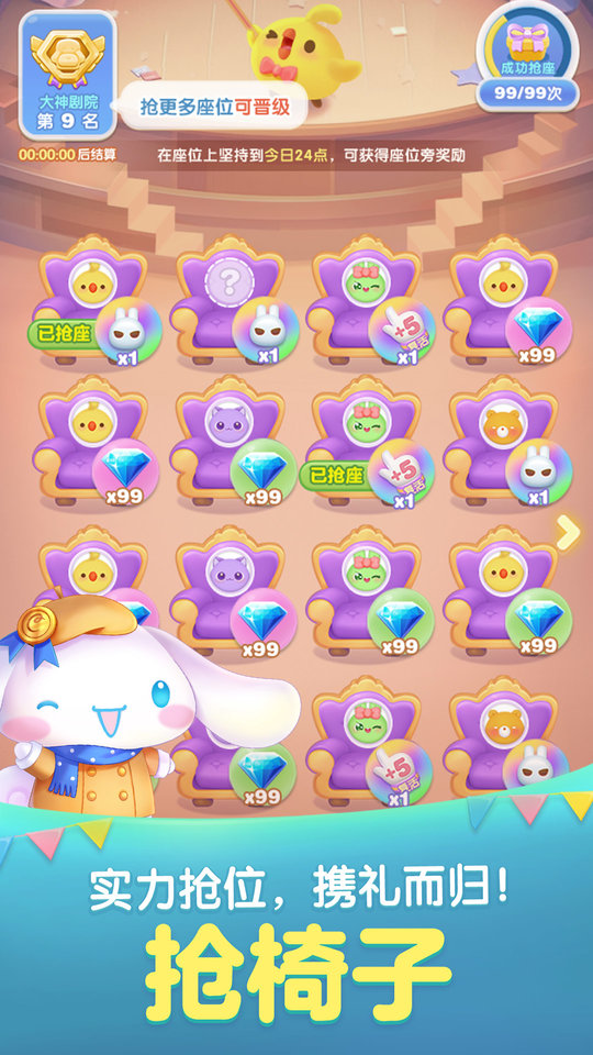 号外号外,互动剧目“抢椅子”年末震撼开演!用消除抢占更多的位置,将心仪礼品满载而归!